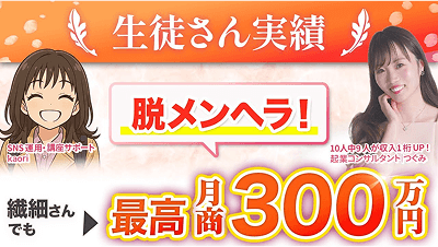 スクール代表のつぐみがすべての個別コンサルおよび無制限のサポート行うコースです。