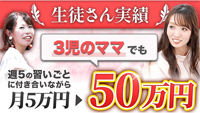 動画編集の単価が大幅アップし、さらに自分のサービスも作って月収50万円を達成しました!私は3児の母ですが、子供の学校の活動や習い事にも積極的に参加できており家庭との両立も叶っています。